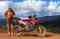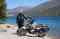 Mezi naše vybavení patří zatím zahálející cestovatelské motorky, stan, spacák a hlavně nezbytná selfie tyč, aby nás na facebooku všichni viděli a abychom vůbec měli nějaké vlastní fotky (nás nikdo nefotí – nikoho nezajímáme).
