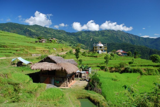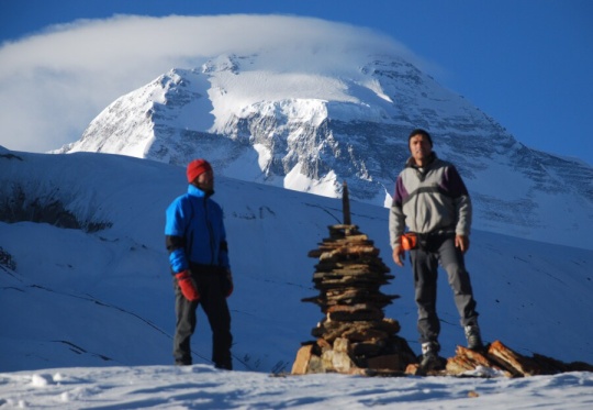 Za měsíc stojíme v Beni v Nepálu a snažíme se nacpat do plného terénního autobusu. Nakonec je nás osm se sympatickým Pasangem – průvodcem. Sestavu doplňují jeho dva bratři jako nosiči. Za tři hodiny vystupujeme v Darbangu (1 110 m) a jdeme na dhalbát. První noc spíme v Dharapani (1 560 m). Je to parádní vesnice na strmých svazích Himalájského podhůří. Spíme v domácím prostředí, stejně jako příští noc v Muri (1 720 m). Krajina je fascinující: rýžová políčka ve stráních, domky z bambusu či ručně řezaných desek, děti se svíčkou u nosu – to se nám nesmazatelně vrylo do paměti.