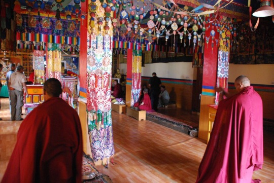 Ze začátku přejíždíme podél Indusu do kláštera v Alčí. Pyšní se výjimečně starými nástěnnými malbami a dřevěnými plastikami, které se uchovaly po devět století uvnitř malých chrámů s hliněnými zdmi a unikly muslimskému řádění ve 14 století.