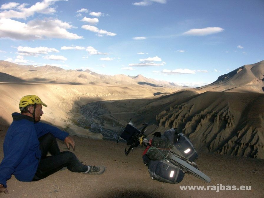 Poslední noc přejezdu tak stanuji ve 4850 m. n.m. Voda na vaření mi venku zmrzla na kost. Ani mně není nejtepleji a blbě se mi dýchá. Ráno se dlouze přemlouvám ke zdolání zbývajících 40 kilometrů kopce na Tanglang La. Až odpoledne slézám z kola ve výšce 5328 metrů. Na druhém nejvyšším sjízdném sedle světa. Tady se taky potkávám s jedinými krajany na cestě. Čtyři Plzeňáci jedou džípem z Manali do Lehu trekovat. Sjezd směrem k Indu je zaslouženou odměnou. Za soumraku brzdím prokřehlý v osadě Rumtse ve 4300 m. n. m. u prvního tibetského baráčku a na beton vím, že v jeho kuchyni se zdržím dlouho. A když se mi daří se sem vnutit i na nocleh, ke štěstí mi nic nechybí. Přejel jsem totiž Main Himalaya Range – Vysoký Himálaj!