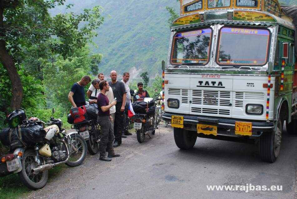 At the end of our adventure, we travel through a dangerous area between India and Pakistan. The conflict here culminated into war in 1999 and more than one thousand Indian and Pakistani soldiers died. That is why the road from Kargil is guarded by the military. The alpine part of the road going our direction is open from only 4 to 7 o´clock and is full of traffic. If you do not get up early, you have to maneuvre through hundreds of smelly trucks on the narrow roads. Three days and 450km later we get to Srinagar. We´ve decided to try an accommodation on a luxurious houseboat among water lilies. The owners care for us as if we are their best clients and not stinky bikers. We are valued guests because the war caused a total decline of tourism in this attractive area. Everything has to be very inexpensive. The following day we visit a floating vegetable market and a Mughalu garden and buy some souvenirs. We´d love to stay much longer in this magical place but the plane will not wait. We must ride the last 300km to Jammu and then take a train, with bikes in tow, 600km more to Dilli.