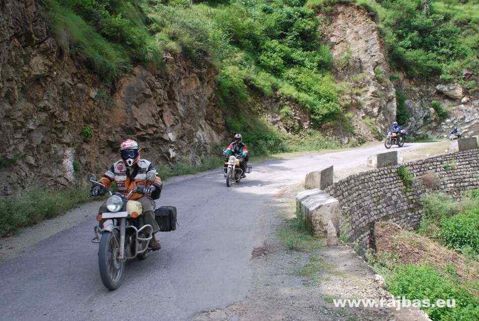 The first part of our one-month long trip led us along China borders in the state of Himalčapradesh. The climate in the river Satluj Valley was nearly tropical which is great for a gross vegetation, eg. banana trees. One of the nights we spent in a 40°C hot springs (well, we´d apprecciate this a bit later). On the way between the valleys we could admire green rice fields on steep slopes. Nobody would grow anything on such places in our conditions but there are more than one milliard of Indians so that they use every piece of land. Sarahan village was our next stop. It´s a former rajah settlement with an amazing surrounding and one of the most exotic sights in north-west Himalayas, Bhimakálí temple. There are two high towers, beautiful slate roofs, shiny golden pinnacles and the top floor is for Goddess Bhima Kálí. She is covered in flowers and incences from the monks and she was veneratd for centuries by human sacrifices untill the 19th century.