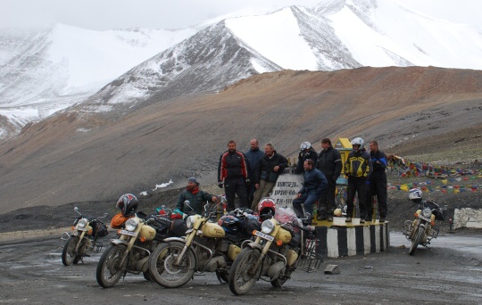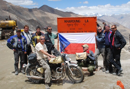 Jako z udělání jela toho roku zrovna parta deseti motorkářů, kteří se všichni znali a většina z nich jezdila za mlada motokros nebo plochou dráhu. Polovina z nich byla ze z Plzně, druhá z Brna. Polovina měla BMW 1200 GS, druhá KTM 990 Adventure. Po celou dobu se pochopitelně dohadovali, která motorka je lepší. Všichni se ale hned zkraje shodli na tom, že Royal Enfield, na kterém jsme jeli, je mrdka, která vůbec nejede (zatímco já byl rád, že nejede a že ji tím pádem udržím na silnici). Těžko ovšem srovnávat motorku, která se beze změny vyrábí už přes padesát let s nejmodernějšími mašinami své třídy. Záhy na to ovšem přišli a ke konci zájezdu už shodně prohlašovali, že ty své bavoráky a kátéemy by sem nevzali, protože by je na místních cestách asi dost zničili. A že starý dobrý Enfield projede úplně všude tam, kde nejmodernější těžká cestovní endura, tak o tom už také nikdo nepochyboval. Jen to asi chce více času. Ale toho mají v Indii všude víc než dost.