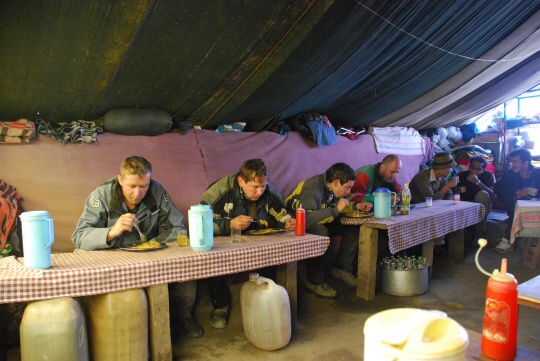 Porada je ovšem velmi krátká a Ode je s řešením hotový raz dva. „Pojedeme normálně dál a Laďa (to jako já) a Anál se vrátí pro Tácka, motorku mu spraví a dojedou nás“. No to mám teda radost! Vstávat musím ještě za tmy, abychom to stihli a pak najedu 100km sem tam, než se dostaneme na začátek dnešní etapy, která je i sama o sobě dost náročná. Marně se snažím argumentovat tím, že jsem ze všech nejpomalejší. Motorkáři mě vlastně už vůbec nevnímají, protože si zrovna zkouší své nové bundy a Odemu je to srdečně jedno. Ach jo.