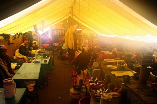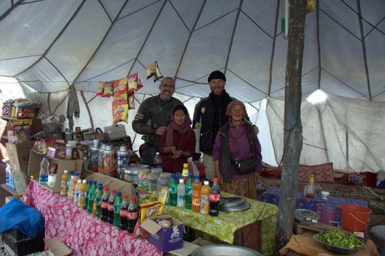 Teď už je ale dobře. Majitelka stanu vaří jeden čaj za druhým, dalbátu je taky dost a dokonce mi půjčuje deku, která je sice strašně špinavá, ale stejně mi dělá radost. Nemám totiž spacák a i ve stanu mi jde pára od huby, což znamená, že je tu maximálně 8stupňů. A možná míň. A v noci teplota ještě klesne. Deku dostal i náš mechanik, kterému jsme půjčili i suché oblečení, takže jenom září. A venku prší….