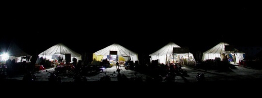No ale cesta příjemně utekla a už jsme Chatru, což jsou tři stany podobné tomu v Battelu. Dál už nejedeme. Do Keylongu je to dalších 70km a za chvíli se stmívá. Bohužel se ale zdá, že všechny stany jsou obsazené. Skupina tří džípů plná místních váhá, jestli má zůstat, nebo jet dále cestou, kterou jsme přijeli. Řidiči viděli, že jsme dorazili a hned se ptají, jaká je cesta. Podařilo se mi je přesvědčit, že to určitě projedou bez problémů, tak rychle naskákali do aut i se svými cestujícími a vyrazili ať stihnou dojet co nejdále, než padne úplná tma. Budiž jim země lehká.