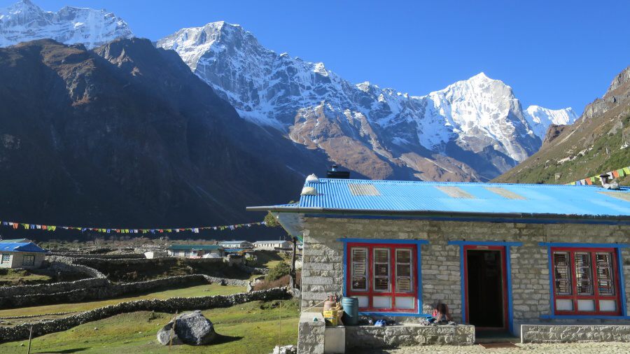 Takovéto lodžije a restaurace využíváme na trekovém zájezdu Everest trek přes tři pětitisícová sedla. Podobné jsou i na jiných trecích v Nepálu.