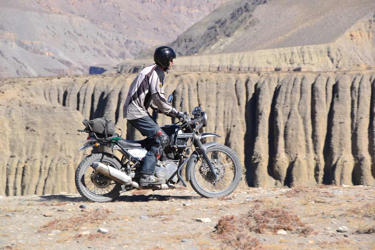 Název Himalayan vychází z terénních schopností motorky, která má zvládnout i zdolávání vysokohorských cest. Přední vidlice zdvih 200 mm, vzadu centrální tlumič umožňuje zdvih 180 mm. V kombinaci se světlou výškou 220 mm, 15 litrovou nádrží a pohotovostní hmotnostní 182 kg tak Himalayan splňuje všechny předpoklady skutečného cestovního endura. V Nepálu jsem na něm najel 2000 km k plné spokojenosti a doporučuji jej na naše motorkářské zájezdy do Indie a Nepálu. Oproti klasickému Royalu Enfieldu si na něm užijete i jízdu v terénu. Je svižnější a tím i bezpečnější, obě kotoučové brzdy jsou výrazně účinnější. Himalayan je ideální motorka do indického a nepálského provozu zejména na nezpevněných cestách v Himálajích.