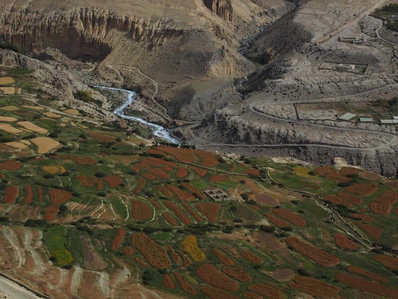 Vydáte-li se na trek Mustangem, těšte se na jeho začátek v širokém korytu řeky Kali Gandaki s hřebeny osmitisícovek po obou stranách. Jejich zasněženými vrcholy se budete během treku kochat často. Krajina se kolem vás bude měnit nekonečněkrát. Přechody z kamenné pouště do skalních masívů, mezi nimiž se vždy vykouzlí zelené údolí s vesničkou nebo klášterem a růžově kvetoucími pohankovými políčky.