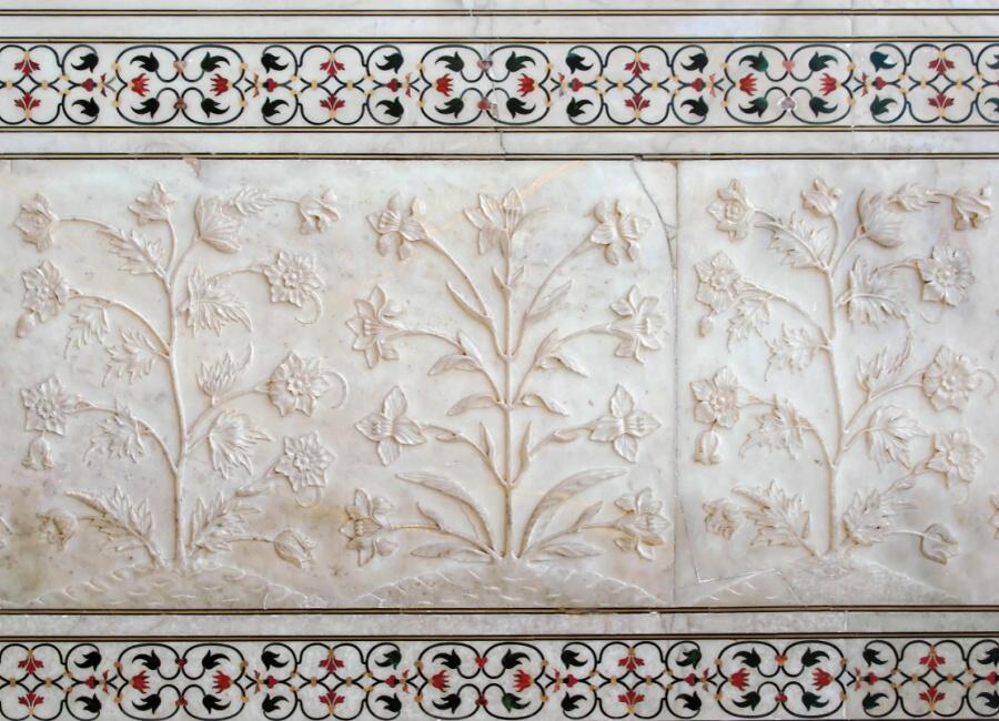 Tádž Mahal - jednoznačný symbol Indie, architektonický skvost ze sněhově bílého mramoru na břehu řeky Jamuna, nechal postavit v roce 1632 ve městě Ágra islámský mughalský vladař Šáhdžahána na paměť Mumtáz Mahal (Vyvolená paláce), své manželky, kterou miloval tak, že ho navzdory tradicím, doprovázela vždy a všude, i na válečných výpravách. Na jedné z nich, v pokročilém stádiu těhotenství , při porodu 14. potomka, zemřela. Šáhdžahán byl nevýslovně její smrtí zasažen. Za pár dní mu zbělely vousy a vlasy, vyhlásil dvouletý státní smutek, během kterého bylo zakázáno slavit, poslouchat hudbu, nosit šperky a používat parfémy.Tádž Mahal byl vystavěn pro ni, pro Mumtáz Mahal, aby symbolizoval věčnou lásku a krásu s ní spojenou . Sargofág Mumtáz Mahal je hluboko pod úrovní podlahy, na které návštěvníci mohou obdivovat pouze kenotaf. Její manžel, stavitel Tádž Mahalu Šáhdžahán byl pohřben vedle ní, i když to narušuje ostatní všudepřítomnou absolutní symetrii a jeho záměrem bylo spočívat na opačném břehu řeky v černém Tádž Mahálu.