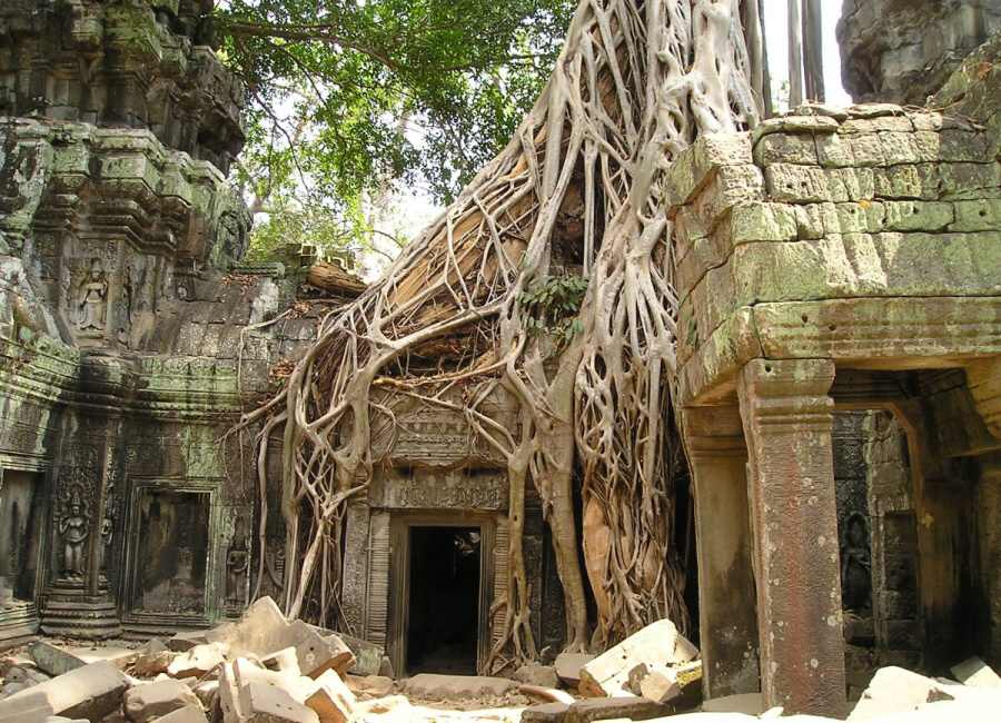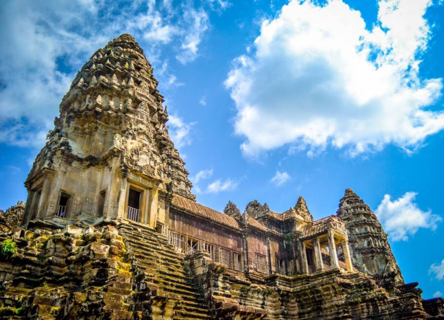 Chrámové město Angkor Wat na severozápadě Kambodži nefascinuje lidstvo náhodou. Tento největší náboženský komplex na světě vznikl ve 12.století na obdélníkovém půdorysu, na ploše 1 km², obklopen/chráněn širokým vodním příkopem, poze se dvěma přístupovými cestami. To způsobilo, že je komplex zachován až do dnešních časů, aniž by ho pohltila okolní džungle. Přesto se v něm setkáte s místy, kde obří stromy staré stovky let budovami prorůstají a působí tak silným dojmem autentičnosti, monumentality. Záměrem bylo, aby symbolizoval domov bohů, hinduistickou posvátnou horu Méra. Vše má zde svoji symboliku.