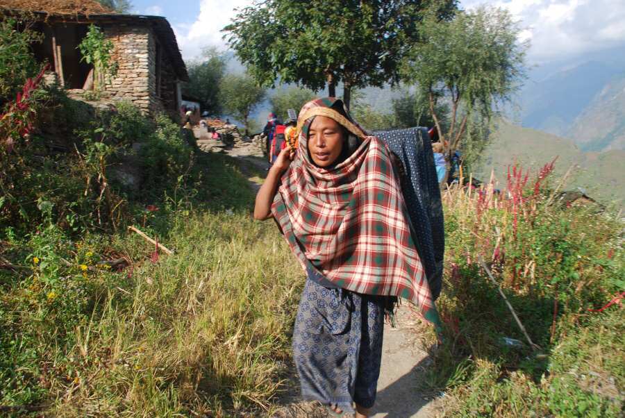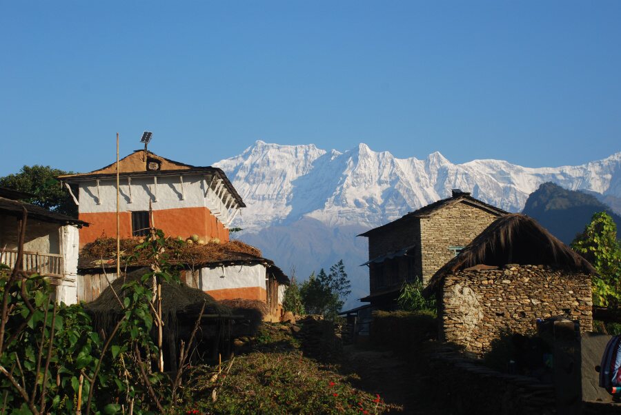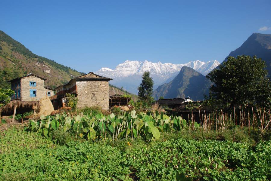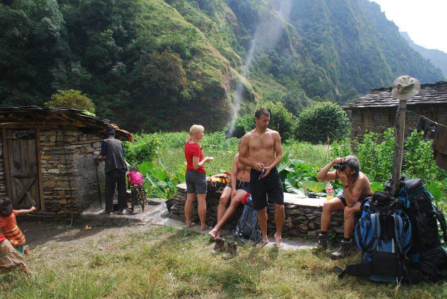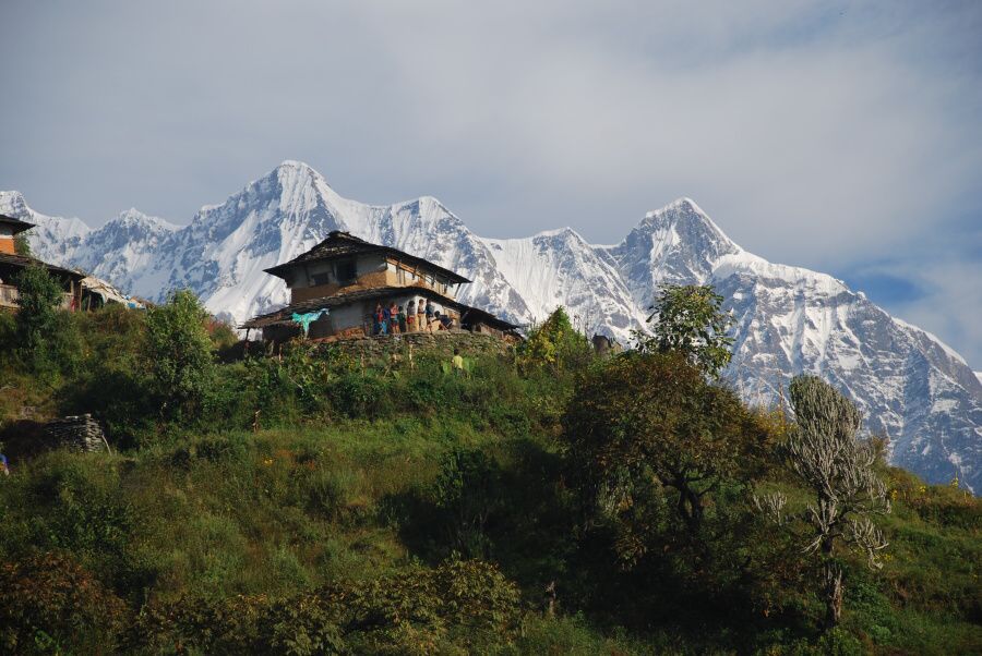 6. den: Přes vesnici Sibang 1730 m, sestup k řece Dhara Kola a výstup do malebné vesnice s výhledem na horské scenerie Muri 1 850 m.