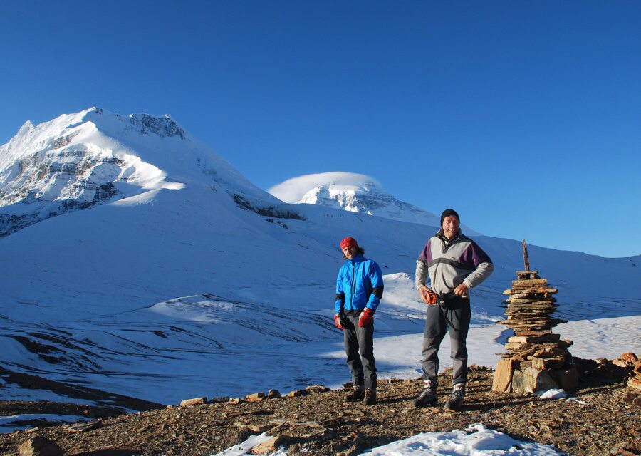 14. den: Po nejchladnějším ránu(může být i –20°C), pozvolný výstup do sedla Dhampus Pass 5 258 m (možný výstup na Dhampus Peak 6 035 m), sestup do tábořiště Yak Kharka 3 680 m, nebo až do Marphy 2 670 m. Velkolepé výhledy na Tukuche Peak 6 920 m a hlavně přes údolí Kali Gandaki na Nilgiri North 7 061 m, vrcholy Annapuren, kaňon království Mustang, Tilicho Peak 7 134 m,…