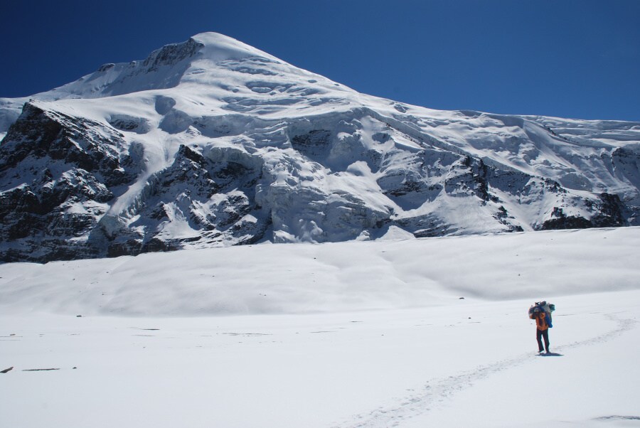 12. den: Po ledovci do Dhaulágiri BC 4 740 m, čtyři hodiny chůze. Odměnou jsou nádherné scenérie a výhledy na vrcholy Dhaulágiri II, III, V, zdánlivě snadný Tukuche Peak 6 920 m a samozřejmě severozápadní stěnu (podobnou pyramidě) Dhaulágiri 8 167 m. Aklimatizační vycházka po ledovci.