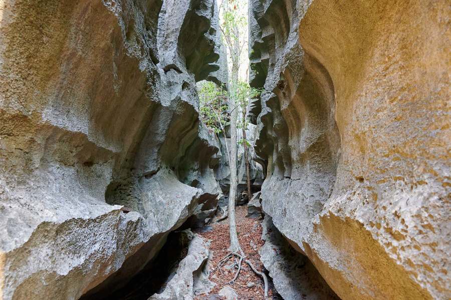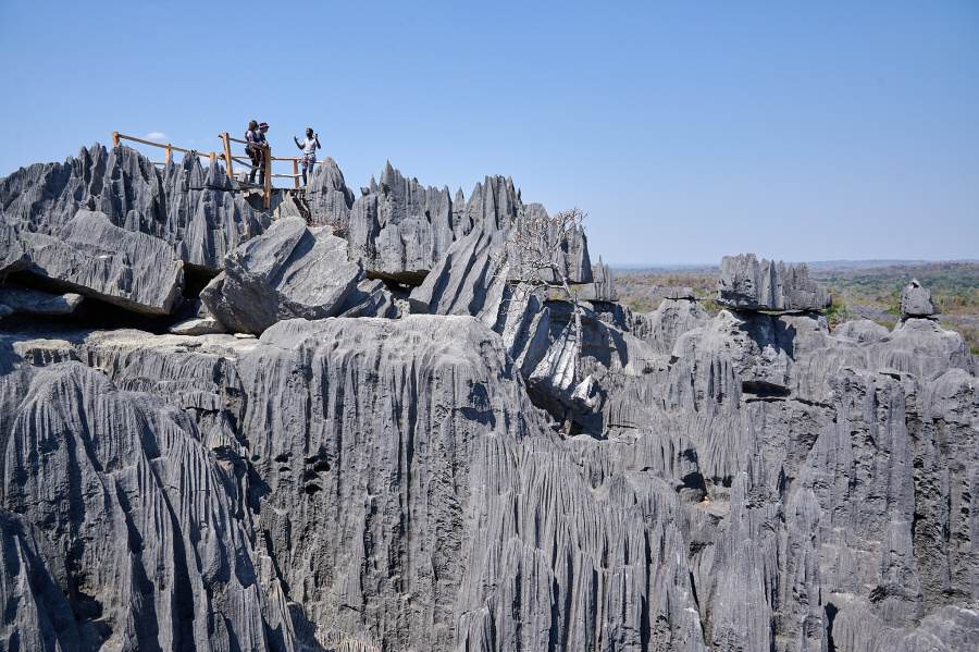 10. den: Další část NP - Grand Tsingy (okruhy Andamozavaky a Ranotsara). Budeme procházet jeskyněmi, skalními bludišti i provazovými mosty. K vidění jsou např. endemické rostliny rodu Pachypodium, lemuři a jedna z mála madagaskarských šelem galídie proužkovaná. Nádherné vyhlídky z tsing. Přenocování v hotelu v Bekopace.