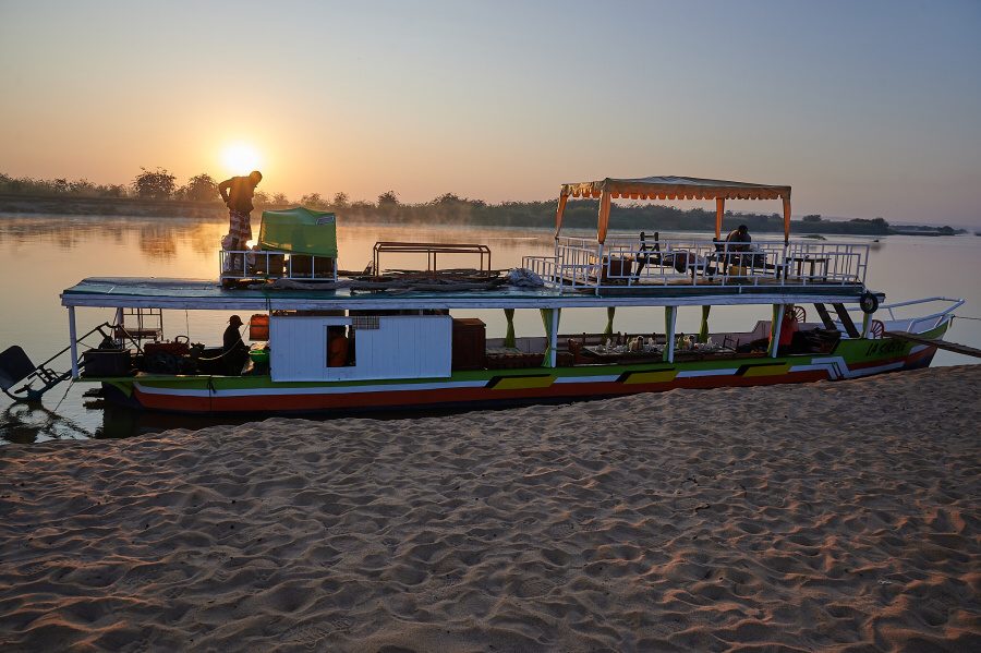 6. den: Započneme třídenní plavbu po řece Tsiribihina. Poplujeme v motorových člunech. U břehů řeky budeme potkávat místní obyvatele, kteří zde pěstují rýži, loví ryby nebo rýžují z řeky zlato. K vidění je zde mnoho druhů ptactva (volavky, ledňáčci, papušci, orli aj.). Snad uvidíme i krokodýla. Přenocování ve stanech na písčitém břehu řeky (oběd i večeře zajištěny – v ceně).