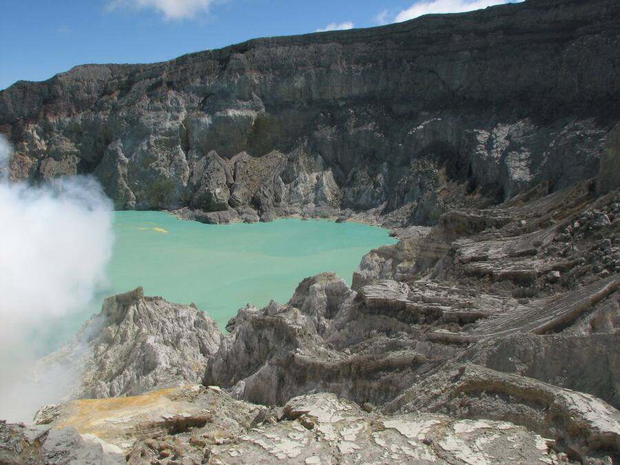 4. Kawah Ijen: krátký výstup, vhodné pro každého. Sestup do kráteru na vlastní nebezpečí kvůli rizikům sirných výparů.