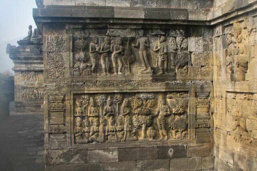 Borobudur - spolu s Baganem v Barmě a Angkor Watem v Kambodži nejvýznamnější památka jihovýchodní Azie. Vystaven v letech 750 - 850, po úpadku budhismu na Jávě pohřben pod sopečným pískem, posléze od roku 1815 opět očištěn ve své velikosti.