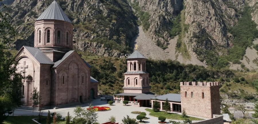 A. Oblast Kazbeku 5 047 m - katedrála Nejsvětější trojice u Stepancminda - ikona a symbol Gruzie, výšlap k vysokému vodopádu Gveleti na ruských hranicích, výjezd do zeleného údolí Juta a také kaňonem řeky Truso, sirné travertinové vývěry, minerální jezírka, ke zřícenině pevnosti Zakagori, 440 km.