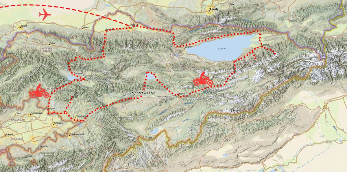 Předběžný program zájezdu Kyrgyzstán, Kazachstán - Hedvábnou stezkou na motorce