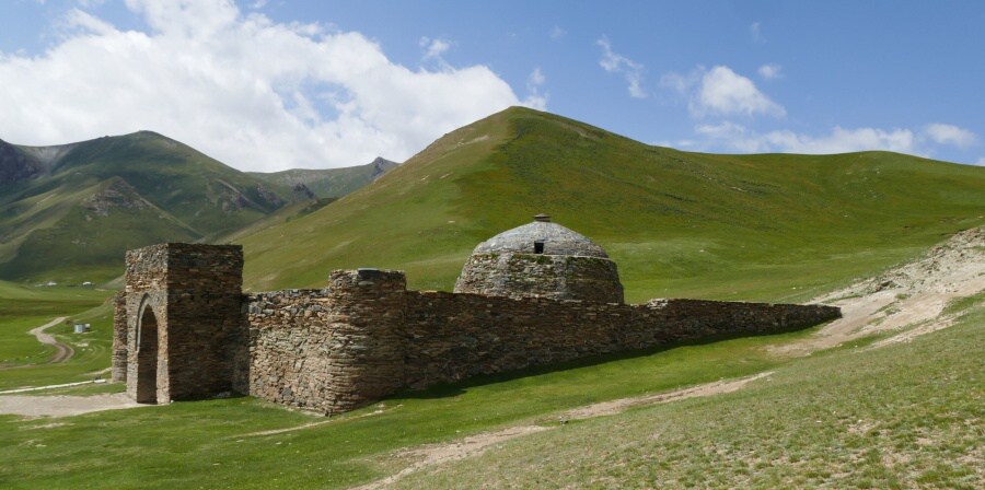 7.den: Objedeme jezero Song-Kol. Stále úžasnou krajinou do města Naryn. Po stopách starodávné Hedvábné stezky dojedeme až do Tash Rabat v 3 100 m - významná karavanseráj stojící na trase hedvábné stezky od 14. století. 250 km.