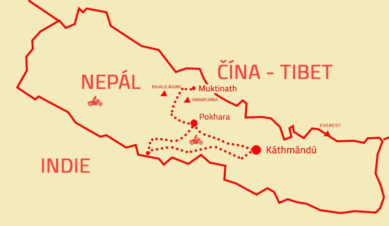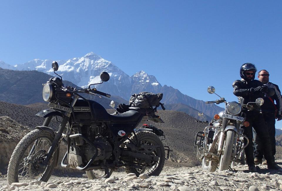 Pronájem motocyklů Royal Enfield Himalayen 419, český průvodce, mechanik motocyklů, Annapurna trek permi, doprovodné auto, ubytování, mapy. Pojištění proti úpadku CK, testovací jízda na Enfieldu v Praze.