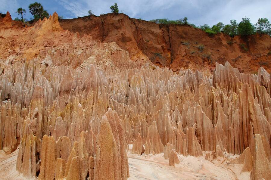 10. den: Z Ambrových hor sjedeme k východnímu pobřeží, návštěva Červených tsing (Tsingy Rouge), útvarů modelovaných deštěm z jílovitých písků. Po každém dešti jsou jiné. U vesničky Anivorano navštívíme posvátné jezero s krokodýly nilskými. Přejezd do hotelu v Ambilobe.