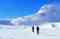 2. den: Taxi do hor, přejezd po zamrzlém jezeru Gjendesheim. Dnes sice nic nenastoupáme, ale i jízda po rovině v protivětru může dát zabrat. Odměnou nám budou okolní scenérie hradby hor po obou březích jezera. Noc v samoobslužné chatě. ↑ 0 m, ↓ 0 m, ↔ 18 km