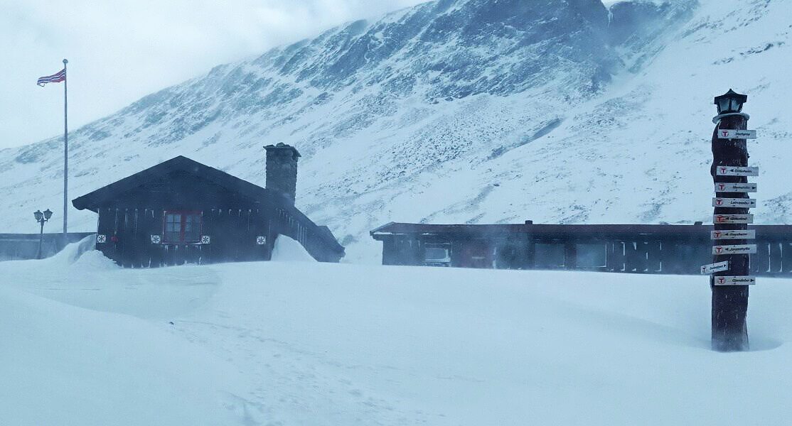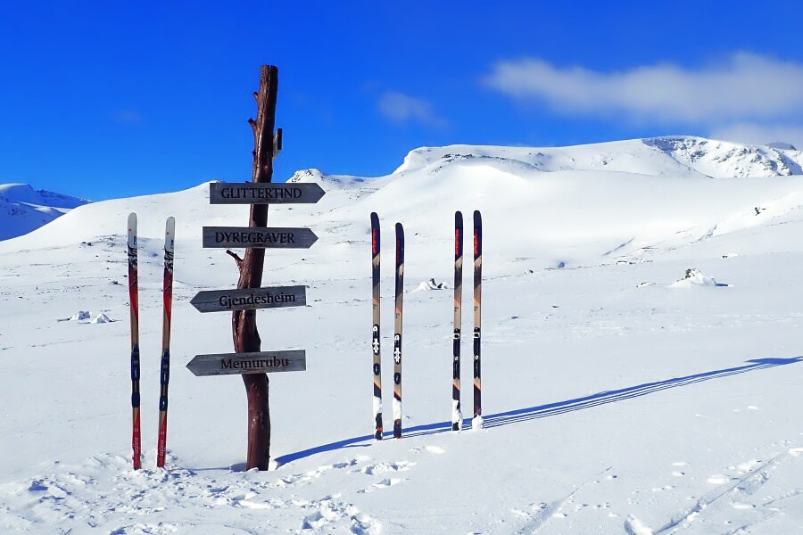 8. den: Kilometr po silnici, běžky nejspíš na rameno a 2 km travers, obujeme lyže a pofrčíme pod druhým nejvyšším vrcholem Skandinávie Glittertind (2464 m) do poslední horské chaty Glitterheim. Závěrečných 6 km stále z kopce. ↑ 600 m, ↓ 300 m, ↔ 18 km