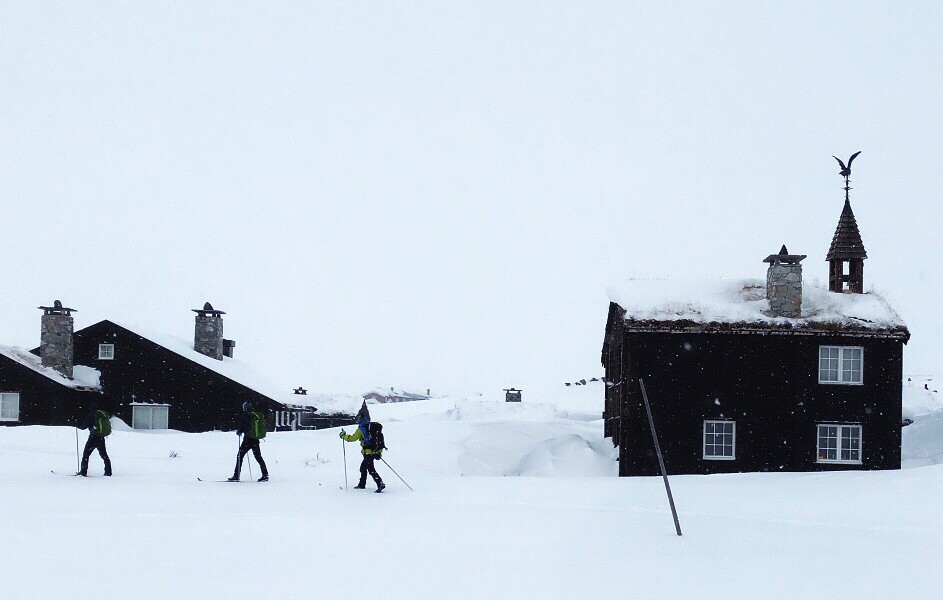 4. den: Kousek se vrátíme z předešlé trasy, nestoupáme kolem sto výškových metrů. Následovat bude již jen cesta z kopce dolů k jezeru Bygdyn. Co jsme včera nastoupali, dne zase sjedem. Je třeba ovládat sjezdy na běžkách. Pro někoho to může být náročnější než cesta do kopce, zvláště, když se k tomu přidá mlha nebo sněžení. Odměnou bude ubytování v hotelu Fondsbu se sprchou, luxusní večeří a nekonečnou snídaní. Možnost vyjížďky po okolních zasněžených staveních. ↑ 130 m, ↓ 500 m, ↔ 16 km