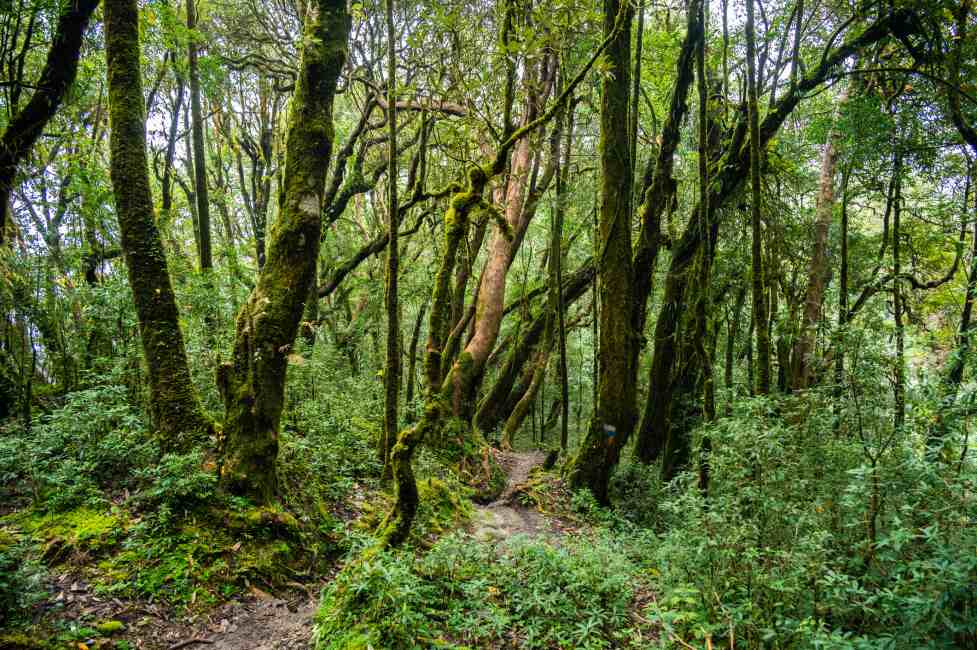 5. den: Rozkvetlým rododendronovým lesem, kde mimo jiné žijí opice, jeleni a mnoho druhů ptáků pokračujeme do malebné vesničky Landruk 1 565 m nad řekou Modi Khola. Dnešním cílem je Forest Camp 2 520 m. Poznání etnika Gurungů. ↑ 900 m, ↓ 250 m, ↔ 6 km