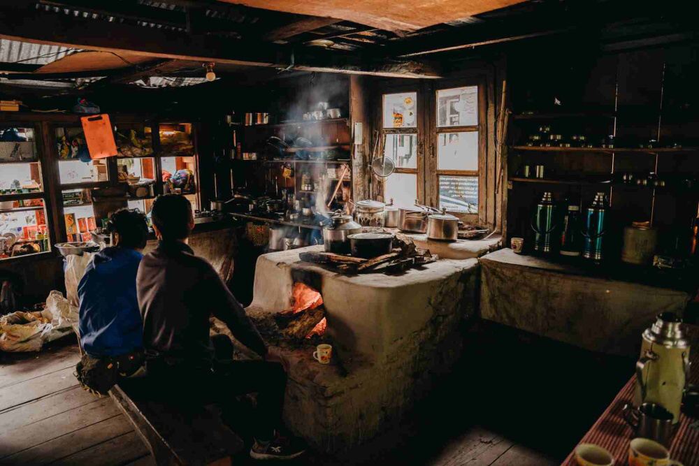 Všude jsou turistické lodžije (ubikace s restauracemi), jídlo zpravidla bez masa, ale výběr velký, od místního dhal batu – rýže s čočokovou polévkou a zeleninou po různé varianty bezmasých jídel, brambory, rýže, těstoviny se zeleninou, pizzy, kari, polévky.... Cestou je možno koupit sušenky, Coca colu, pivo, s přibývající nadmořskou výškou stoupá i cena.…