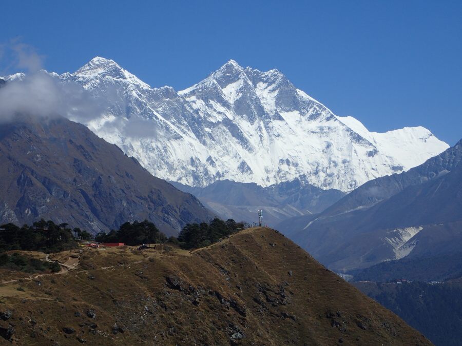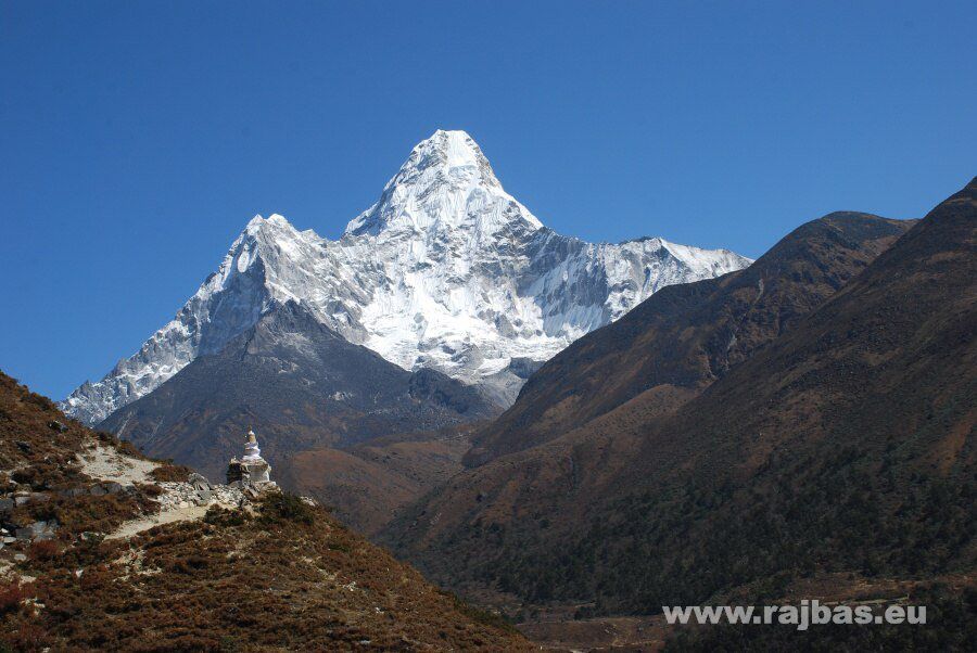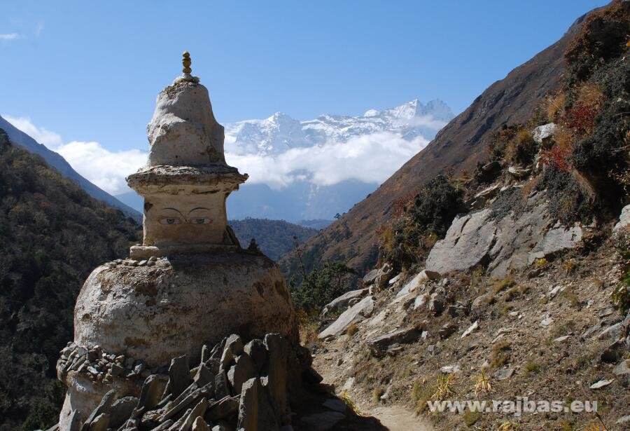 Nádherné výhledy na hlavní himálajský hřeben s Mount Everestem 8 850 m, 8 516 m, Lhotse Shar 8 382 m, Ama Dablam 6 680 m, Lhotse, Thamserku, Kangtega, buddhistický klášter v Kumjungu. ↑ 691 m, ↓ 691 m, ↔ 9 km