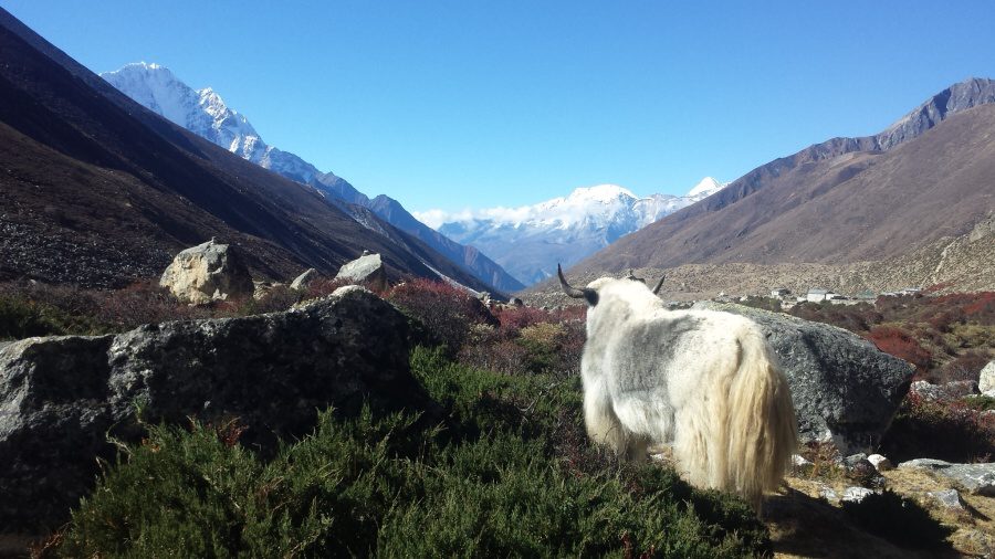 15. den: Přes ledovec Ngozumba do Gokya 4 790 m, vesnice na břehu tyrkysového posvátného jezera Dudh Pokhari s dominantou šesté nejvyšší hory světa Cho Oyu 8 201 m. ↑ 176 m, ↓ 97m, ↔ 4 km
