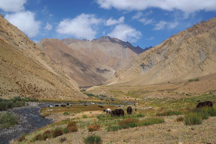 11. - 12. den: Lingshed 3900m – Photoskar 4120m – návštěva kláštera Lingshed, možnost zůčastnit se ranní meditace, přechod sedýlka Margun La 4380m a Kiupala 4430m a přes vesnici Gongma pod sedlo Sengge la, na tábořišti nocleh. Přechod sedla Sengge La 5000m. pastevecká oblast pod Lví skálou. Příchod do nádherně umístěné vesnice Photoskar.